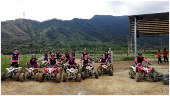 時間還早,趁著中飯之前,我們來到了青山環(huán)繞的沙灘車基地。早上的雨水還沒有干,一下車,泥土的氣息撲面而來。基地的視野很寬闊,讓人心曠神怡。每個人騎著自己的沙灘車出發(fā)了,到處都是泥坑,就是這種刺激,讓大家玩的更帶勁,不管不顧,勇往直前。
